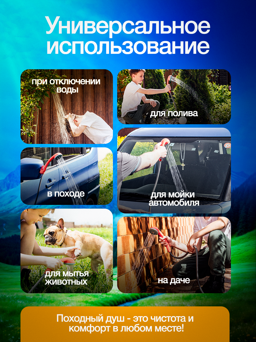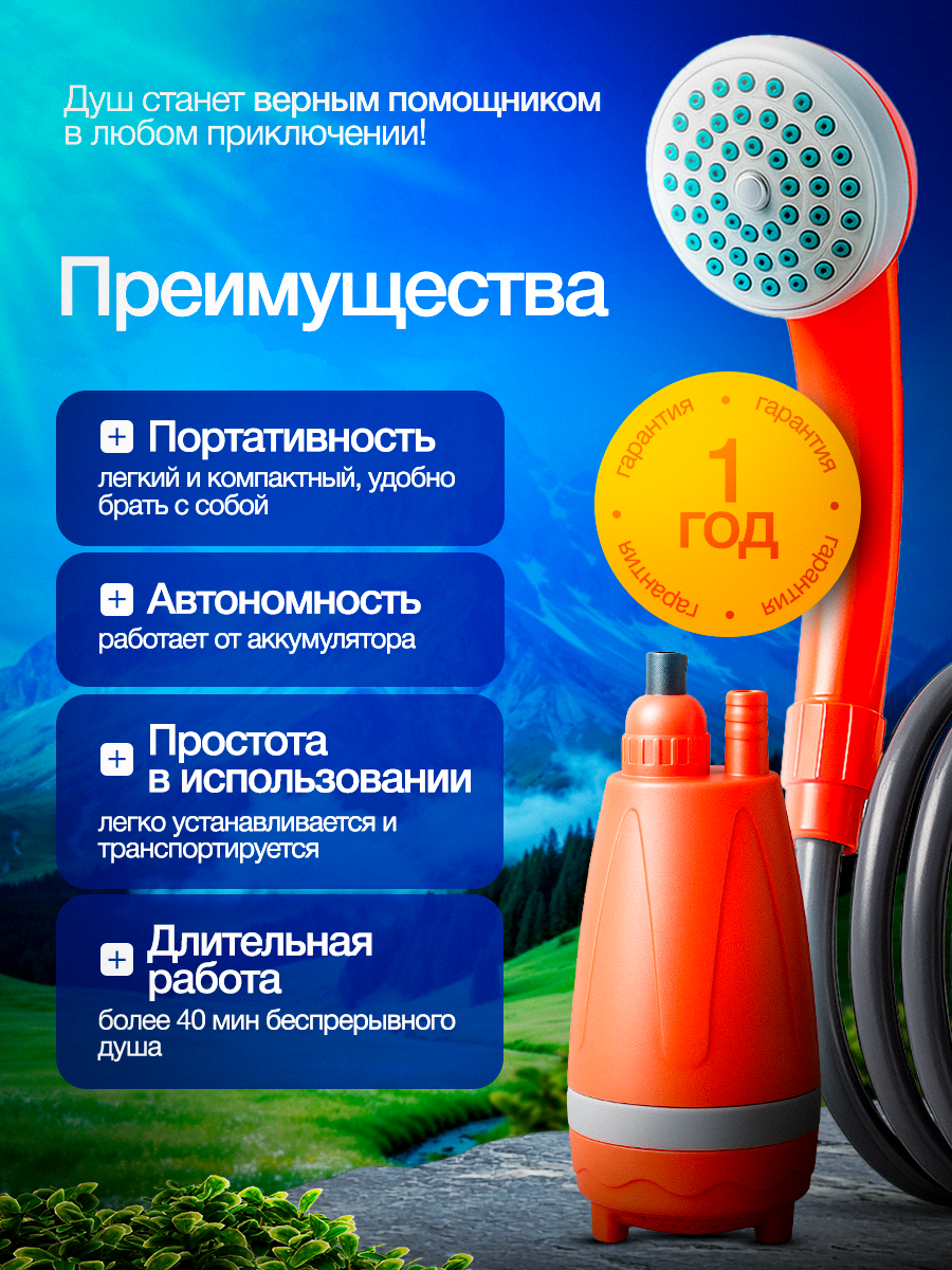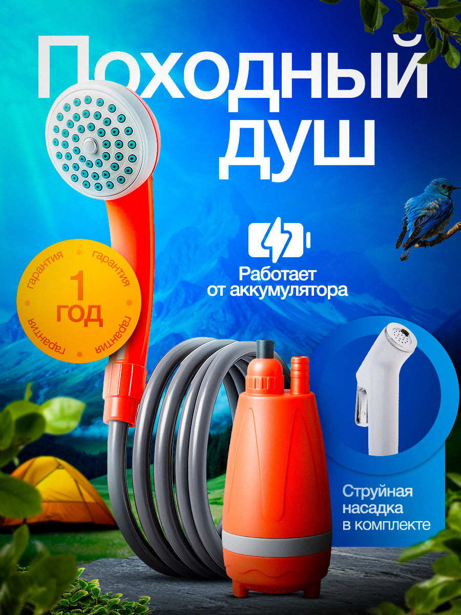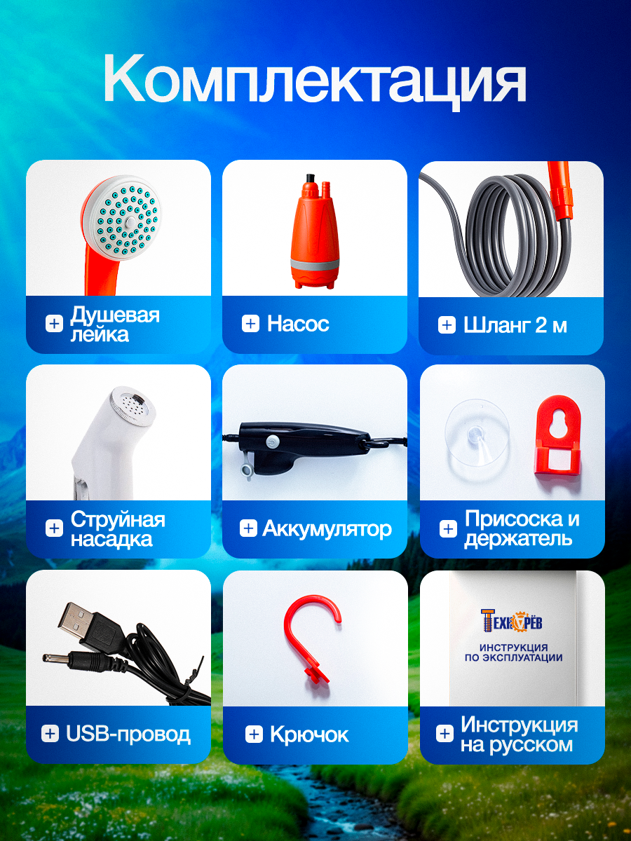 Походный аккумуляторный портативный душ ТЕХНАРЁВ, для дачи и кемпинга интересное: