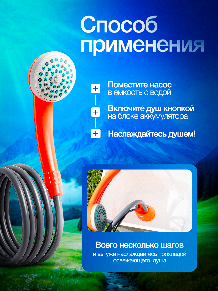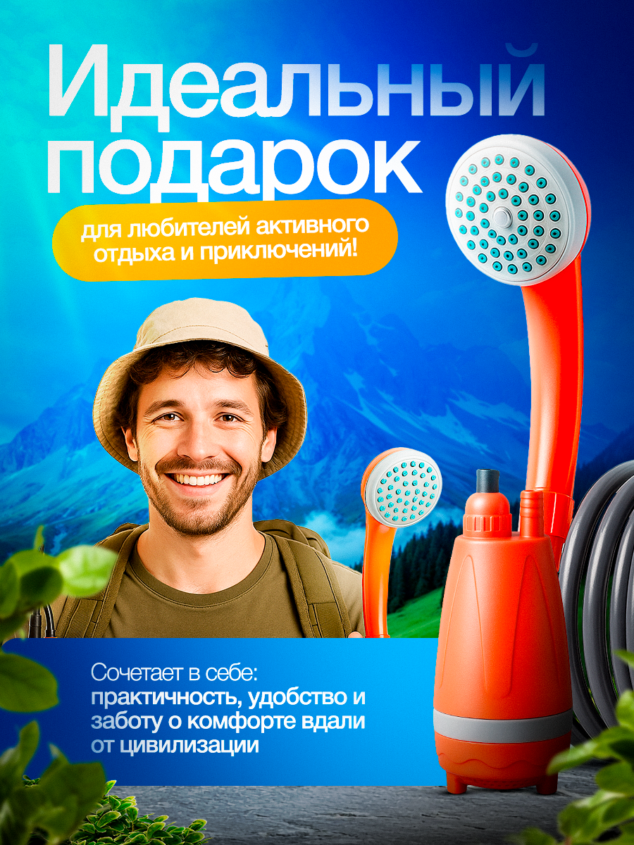 Портативный душ с насосом для дачи и туризма, аккумуляторный