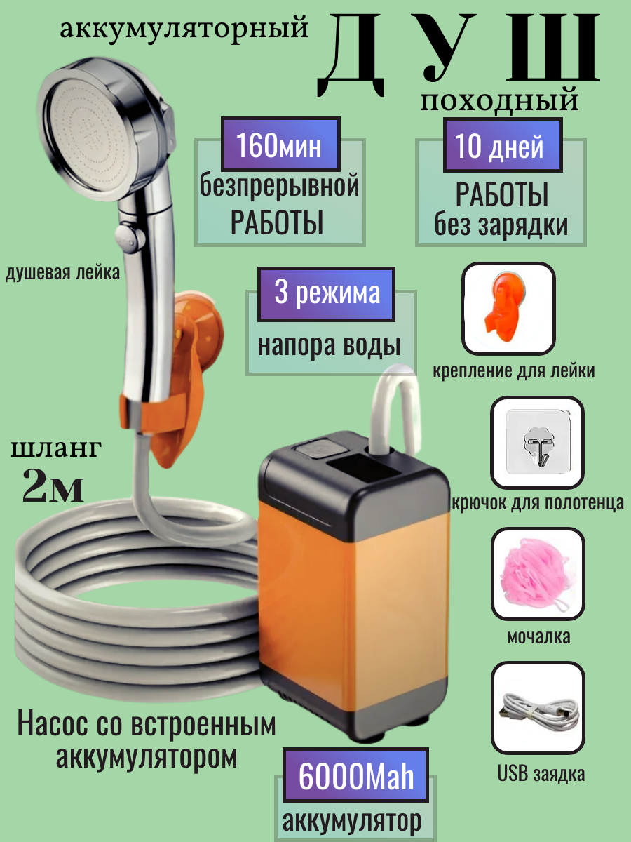 Портативный душ с насосом для дачи и туризма, аккумуляторный