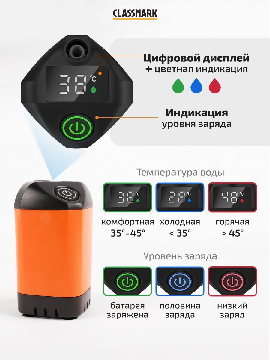 Переносной душ FF8, для кемпинга, с насосом, индикатор температуры, оранжевый, душ для дачи с подогревом и насосом интересное: