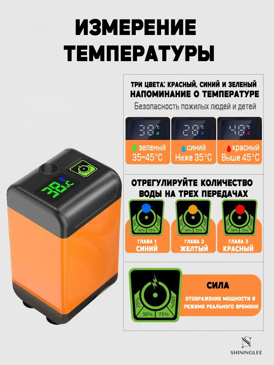 Переносная ванна SHININGLEE, с индикатором температуры и расходом воды, оранжевая,6000 мАч интересное: