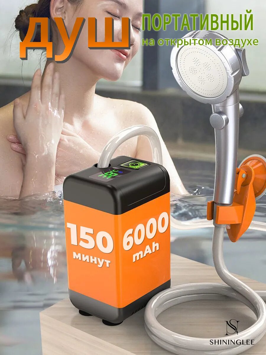 Портативный душ SHININGLEE для кемпинга, с индикацией питания, LED-дисплей, 6000мАч