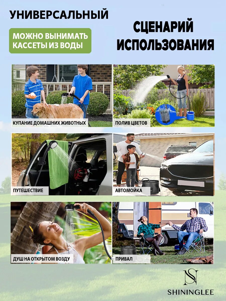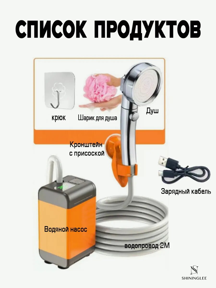 Портативный душ с насосом для дачи и туризма, аккумуляторный