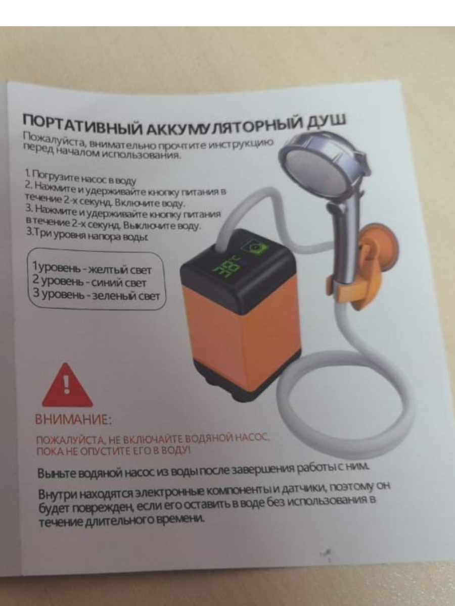 Ниже Вы можете прочитать отзывы на Аккумуляторный душ / Походный душ портативный / Аккумуляторный душ для дачи с насосом, USB-зарядка, ознакомится с подробными характеристиками, посмотреть интересные обзоры и фотографии на Аккумуляторный душ / Походный душ портативный / Аккумуляторный душ для дачи с насосом, USB-зарядка.