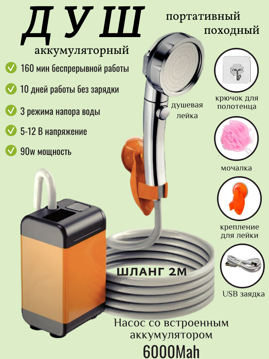 Портативный душ с насосом для дачи и туризма, аккумуляторный