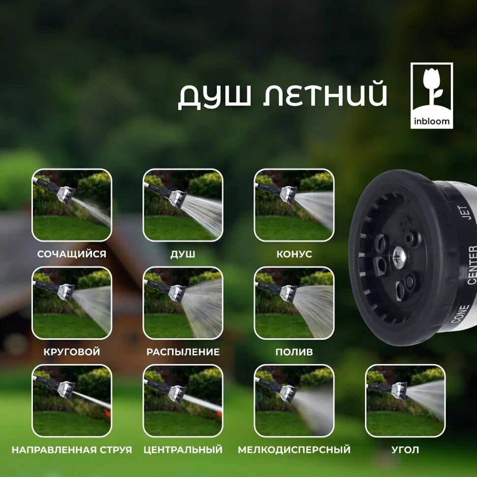 Летний душ для дачи, INBLOOM, 9 режимов,145-230 см, телескопический штатив, металл интересное:
