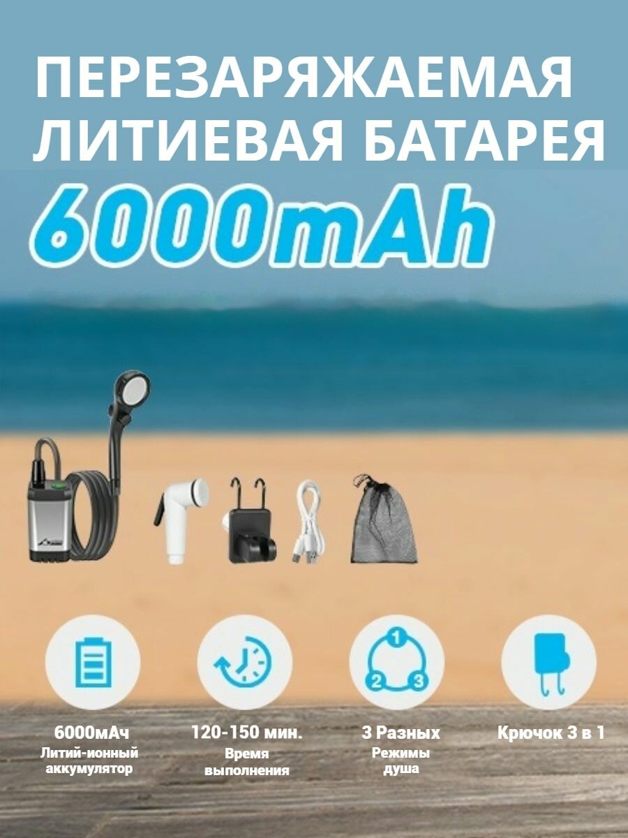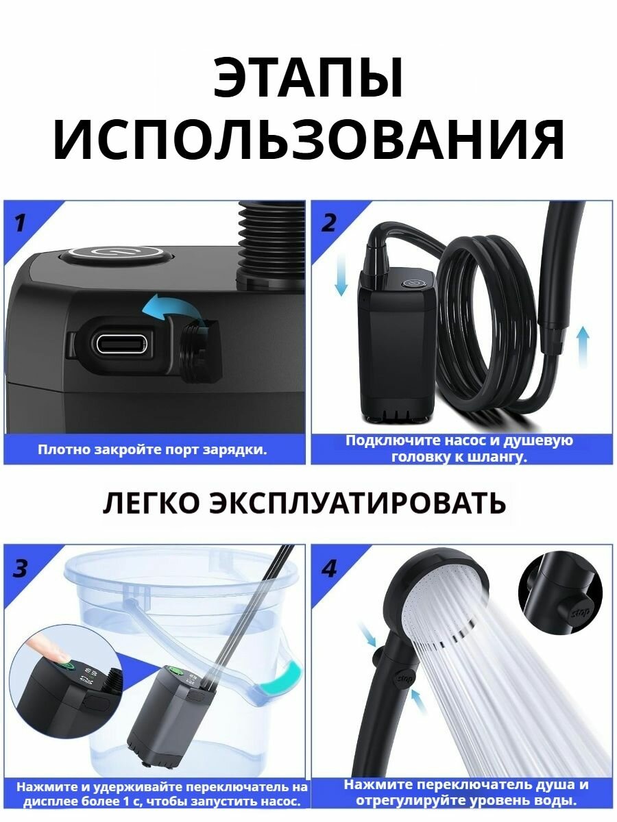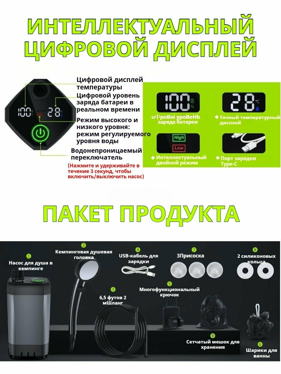Летний походный душ аккумуляторный, портативный , туристический переносной, для дачи интересное:
