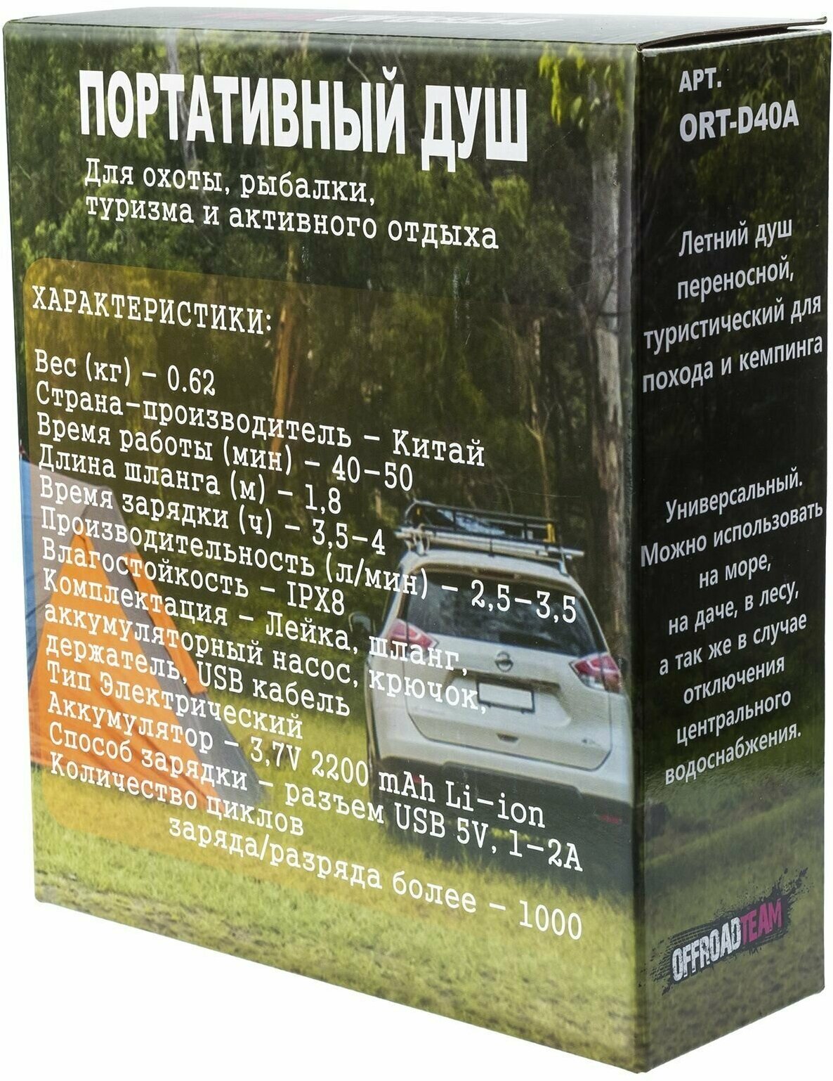 Купить Походный аккумуляторный портативный дачный душ, для кемпинга, пикника или автопутешествий (один акумулятор) OffRoadTeam ORT-D40A