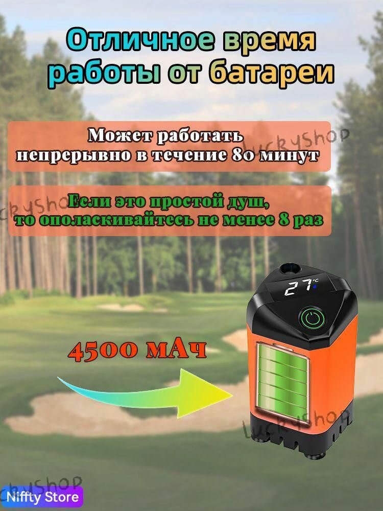 Переносной душ, с регулировкой температуры, пластик, оранжевый и черный интересное: