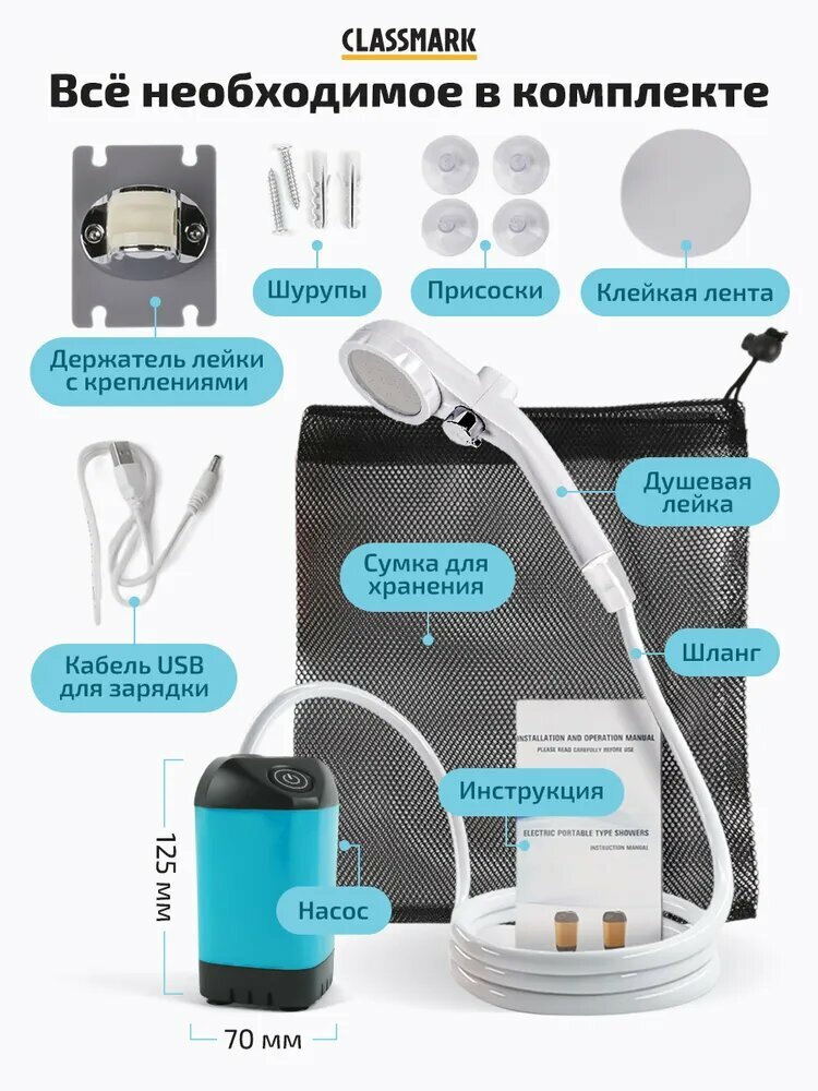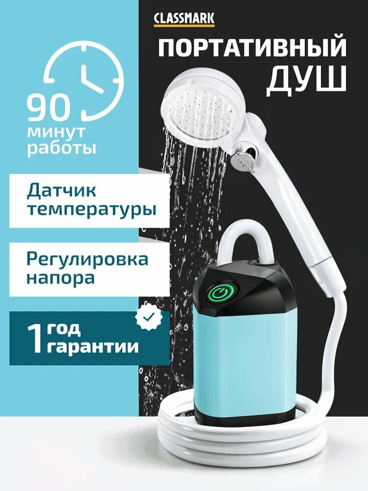 Портативный душ аккумуляторный Classmark для дачи, походный, с датчиком температуры, 90 мин работы, 8 литров/мин интересное: