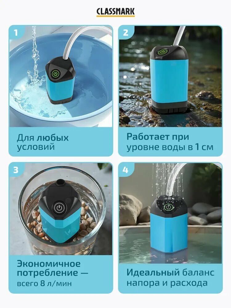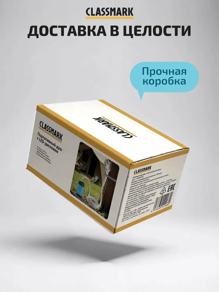 Купить Портативный душ аккумуляторный Classmark для дачи, походный, с датчиком температуры, 90 мин работы, 8 литров/мин