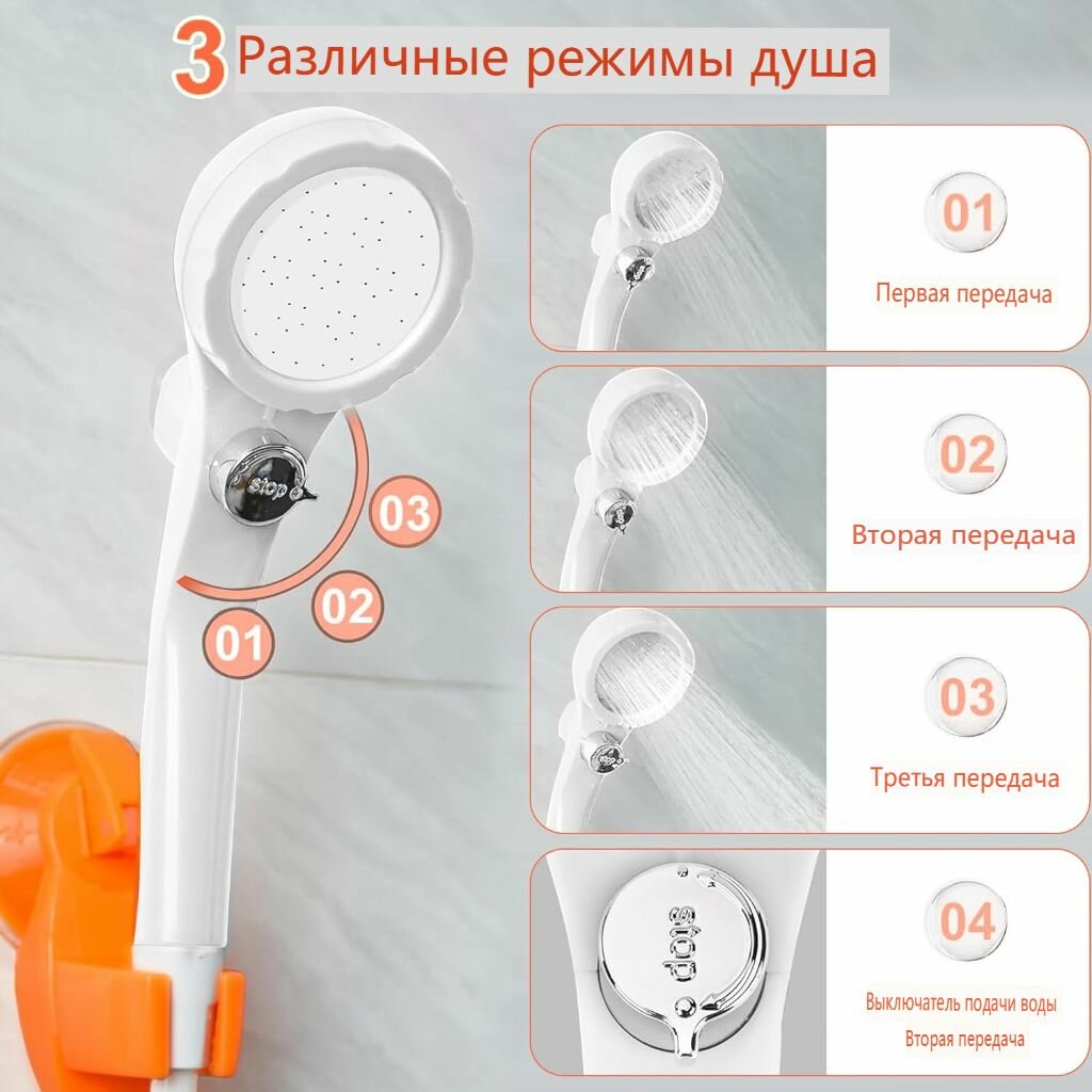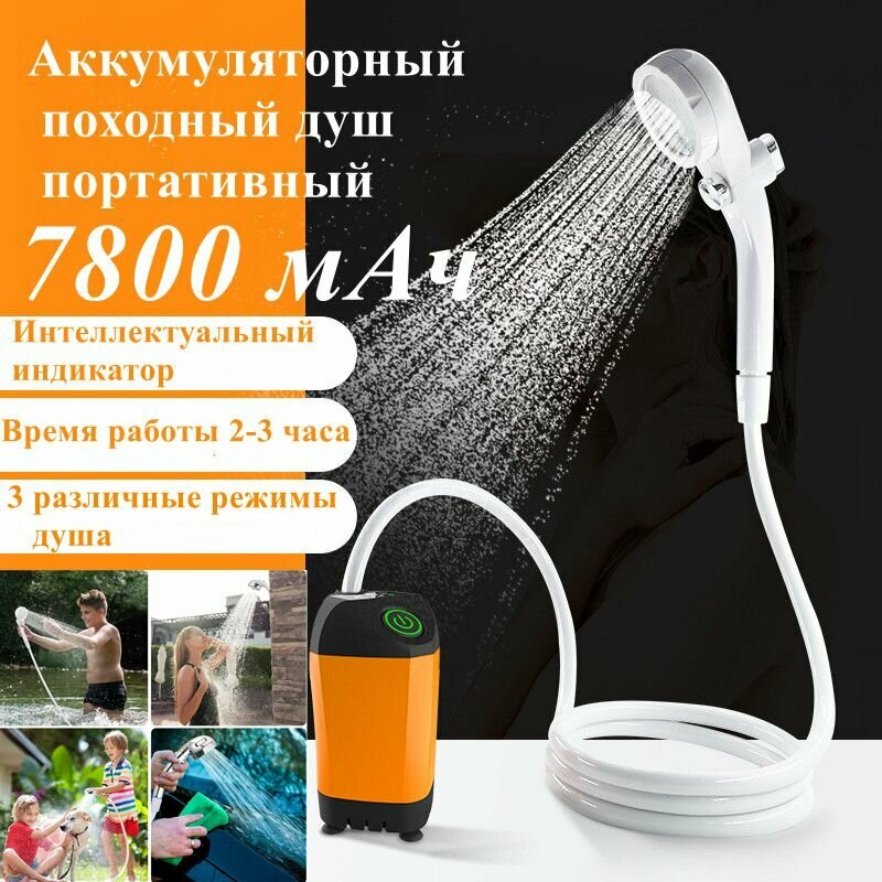 Портативный душ, походный душ, на открытом воздухе, 3 режима, с индикатором температуры, оранжевый интересное: