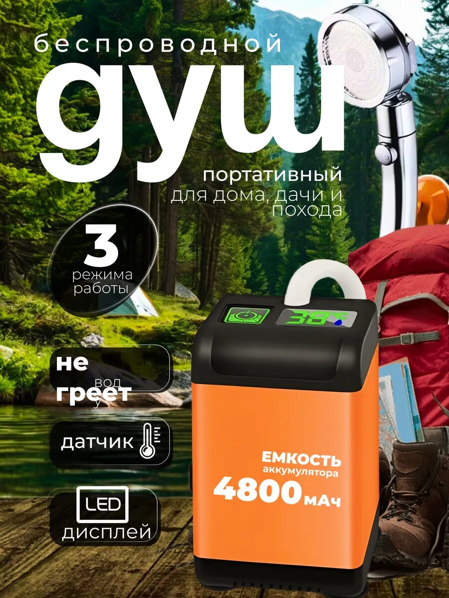 Портативный душ с насосом для дачи и туризма, аккумуляторный
