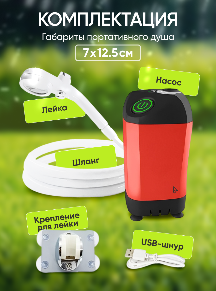 Портативный душ с насосом для дачи и туризма, аккумуляторный