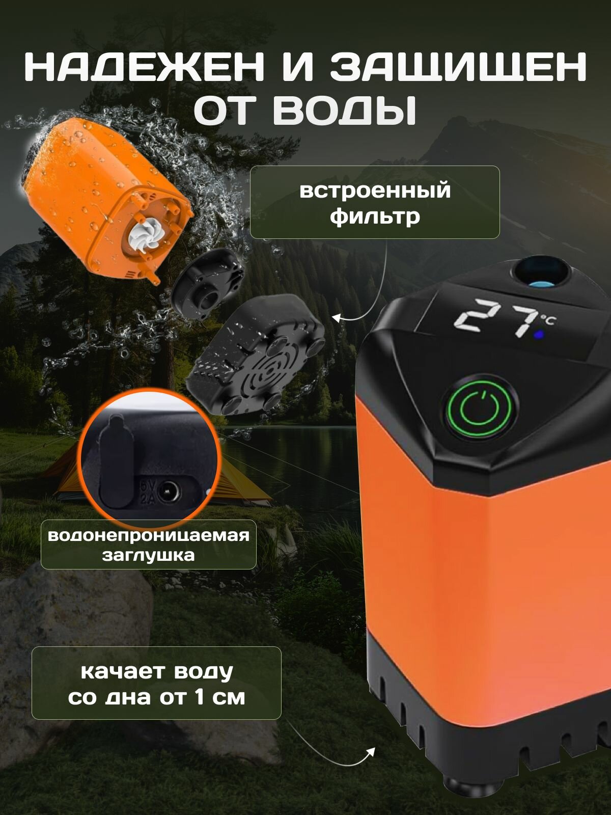 Портативный душ с насосом для дачи и туризма, аккумуляторный