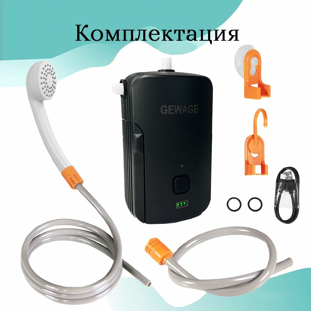 Походный душ GEWAGE на аккумуляторе, с насосом, переносной, туристический. АКБ 4400 mAh. интересное: