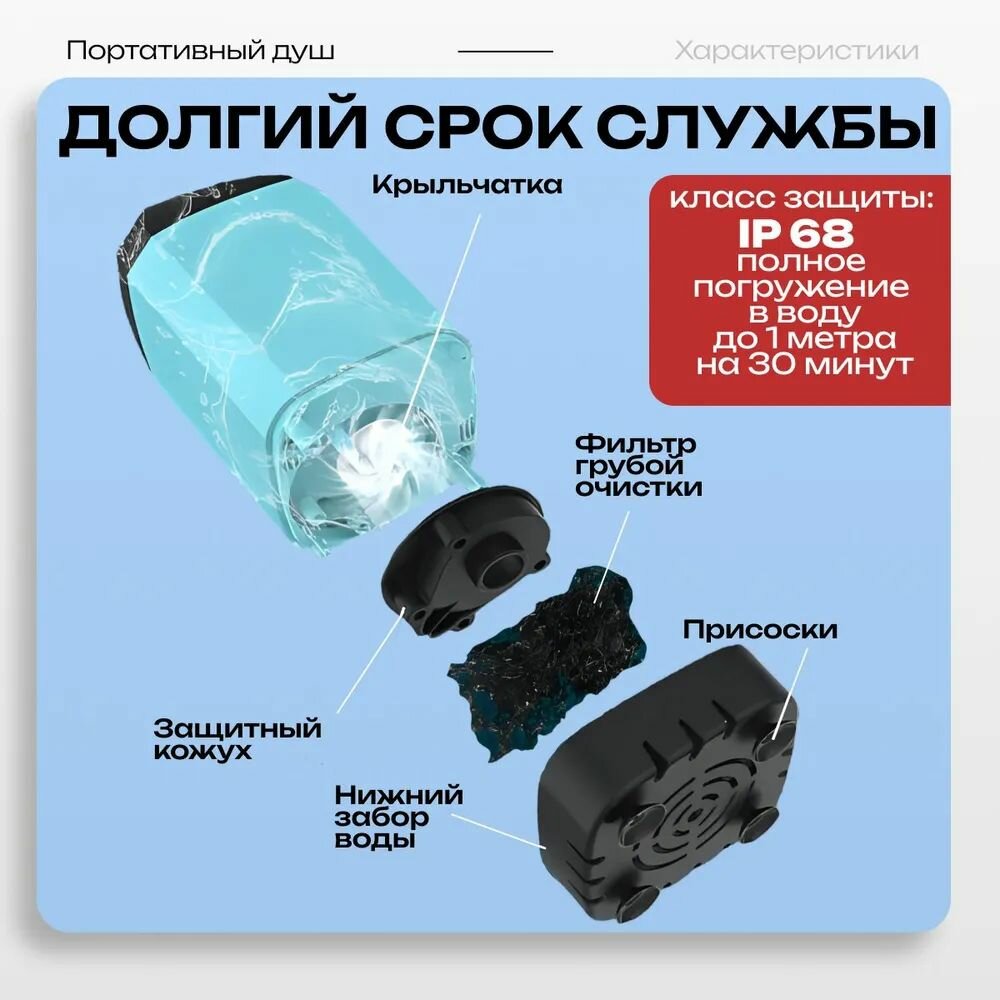 Портативный душ с насосом для дачи и туризма, аккумуляторный