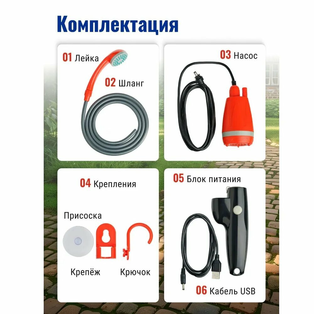 Портативный душ с насосом для дачи и туризма, аккумуляторный