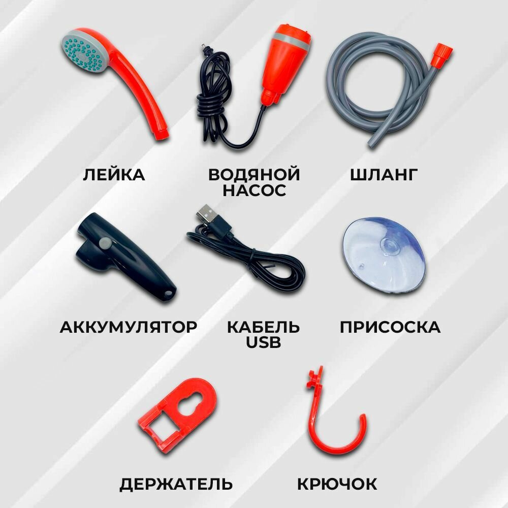Портативный душ с насосом для дачи и туризма, аккумуляторный