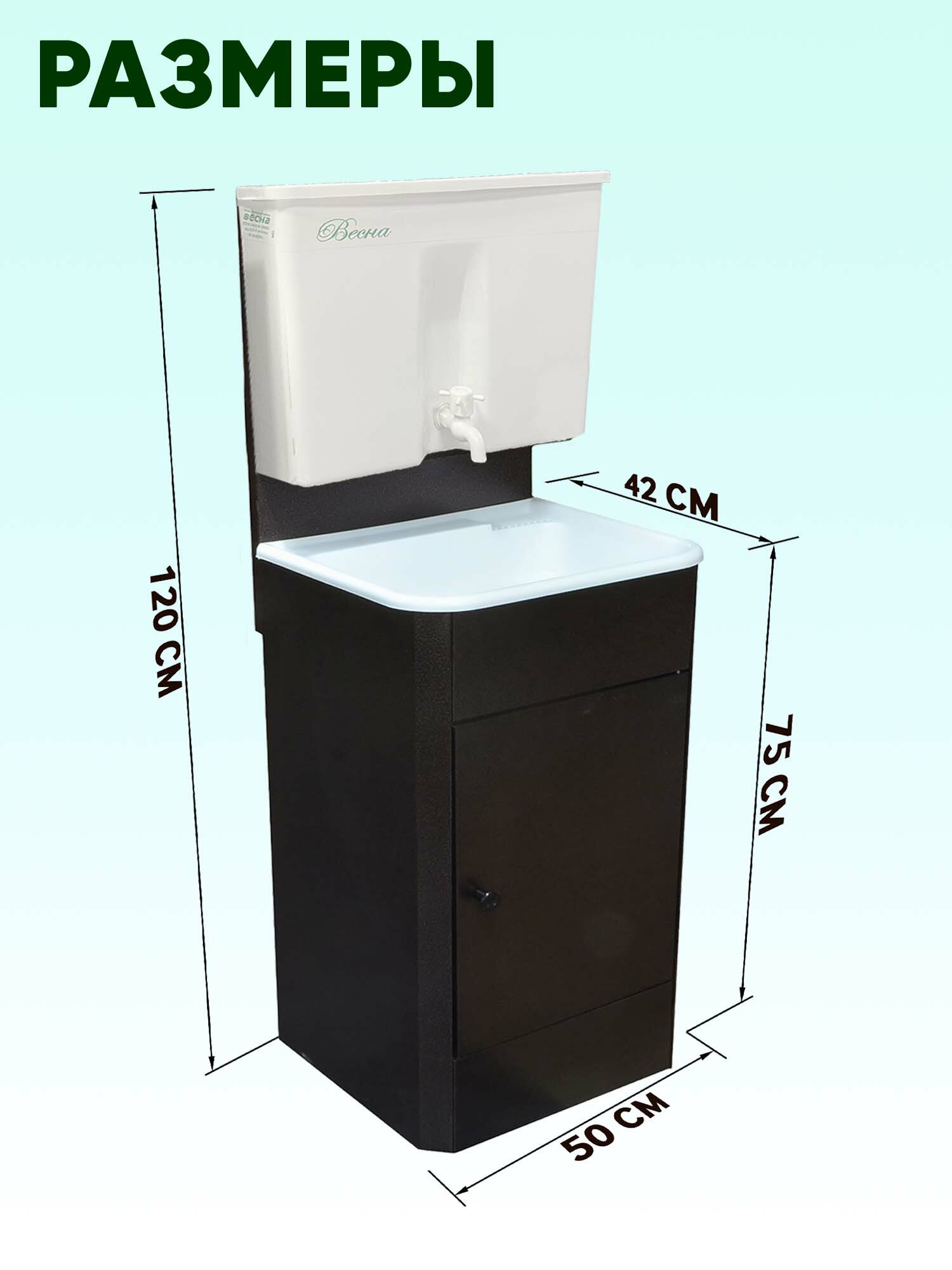 Умывальник дачный "Весна" без подогрева, тумба, пластмассовый бак, пластмассовая мойка, цвет серебро