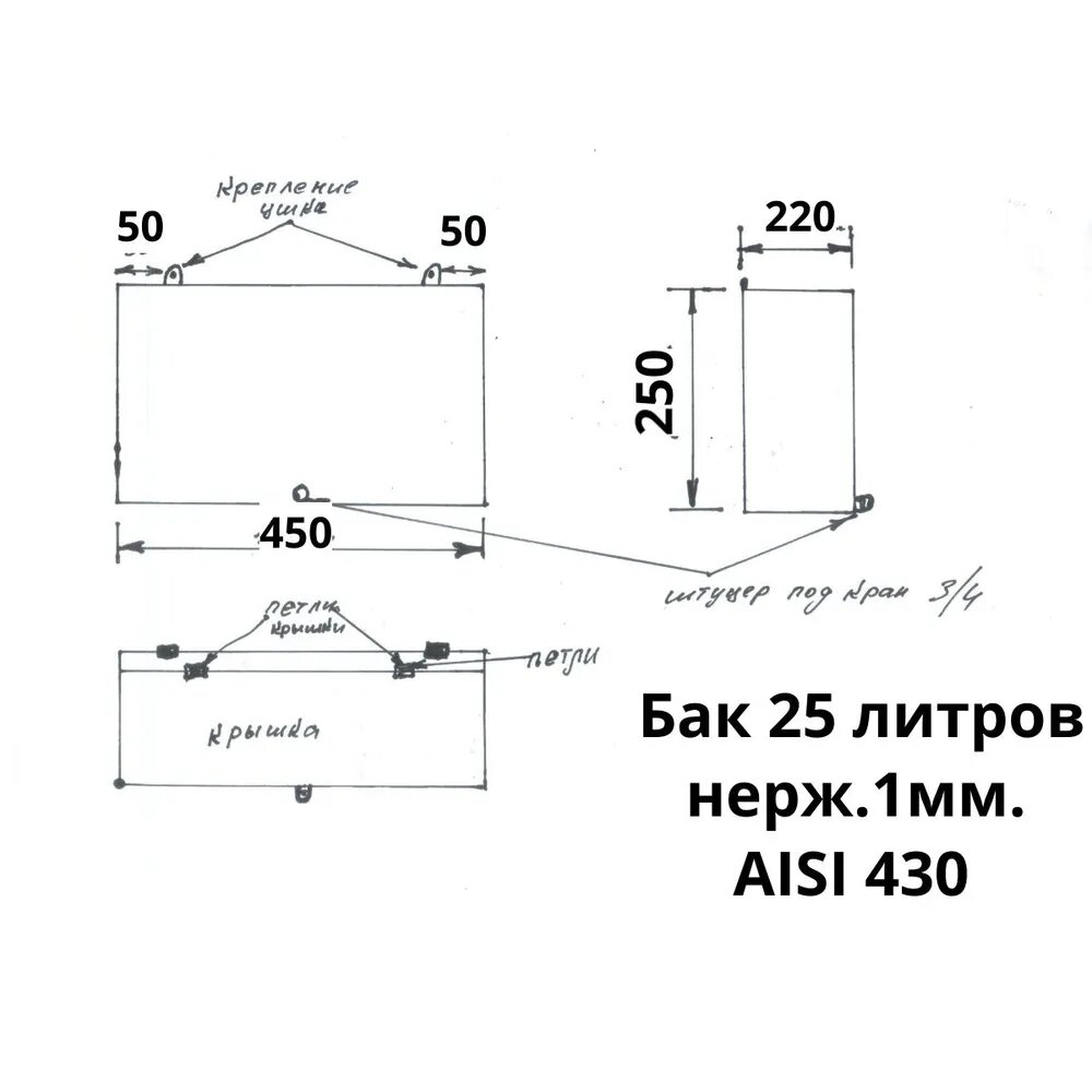 Бак 25 литров для воды из нержавеющей стали AISI 430, толщина 1 мм. интересное: