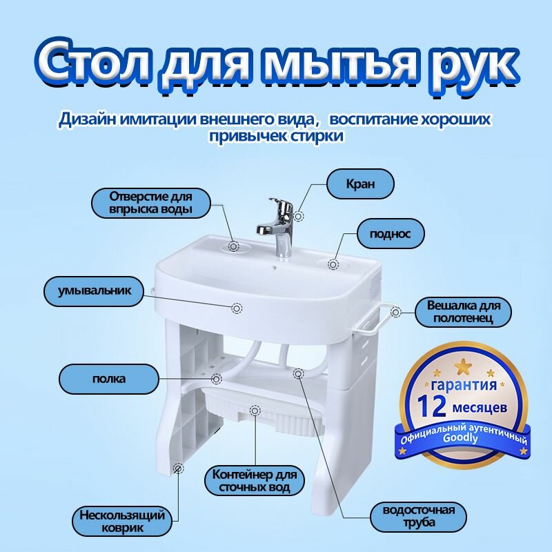 Раковина детская с водой, умывальник для малышей, рукомойник для детей, белая. умывальник детский интересное: