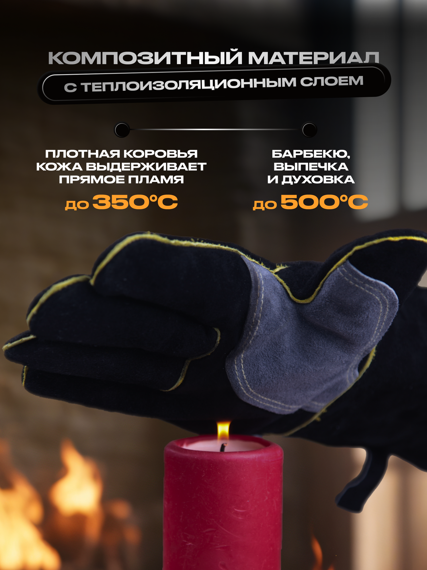 Термостойкие перчатки, огнеупорные, для гриля/казана/сварки, удлиненные, чёрные, 2 пары интересное: