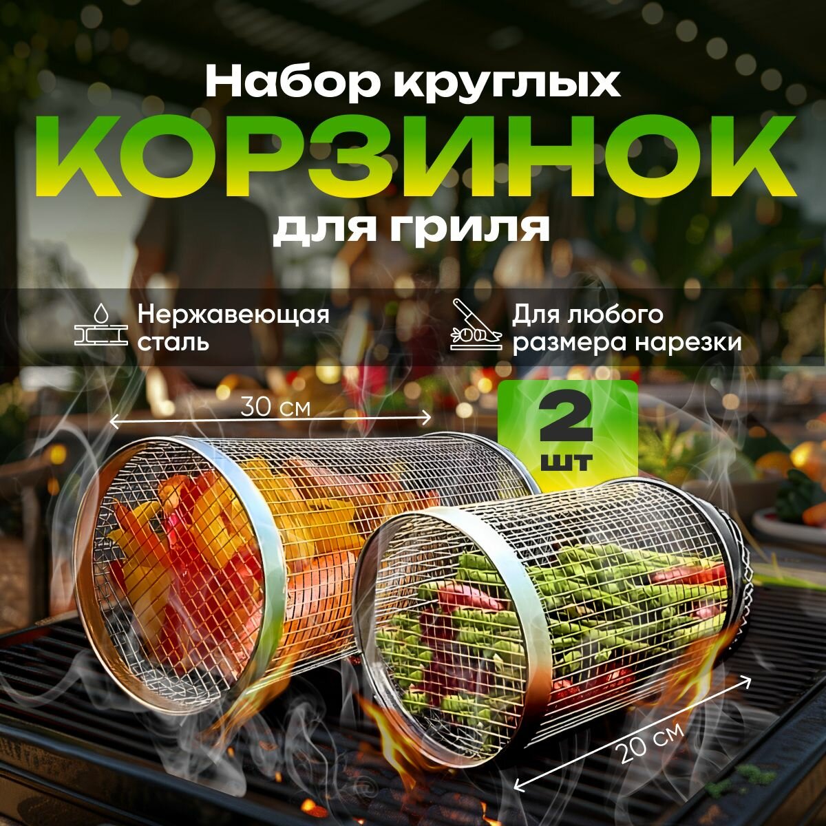 Комплект 2 ШТ. 30 см + 20 см: Решетка для мангала из нержавеющей стали, корзина для барбекю/сетка из нержавеющей стали для мяса и овощей интересное: