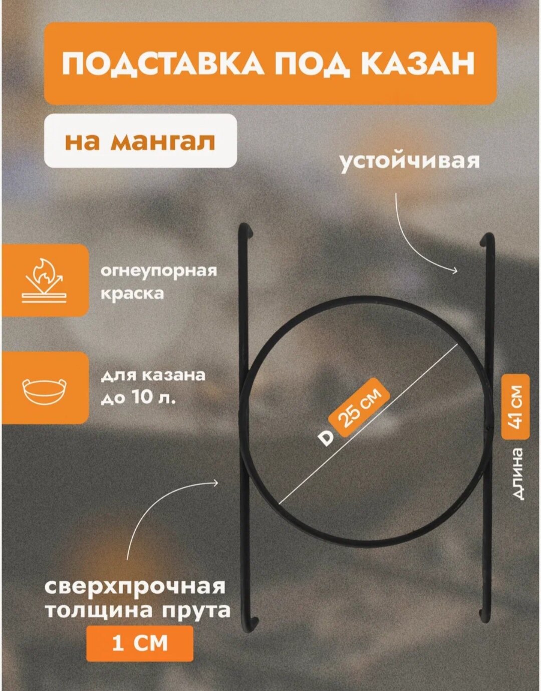 Подставка диаметр 24см под казан или садж на мангал, чёрная, металлическая интересное: