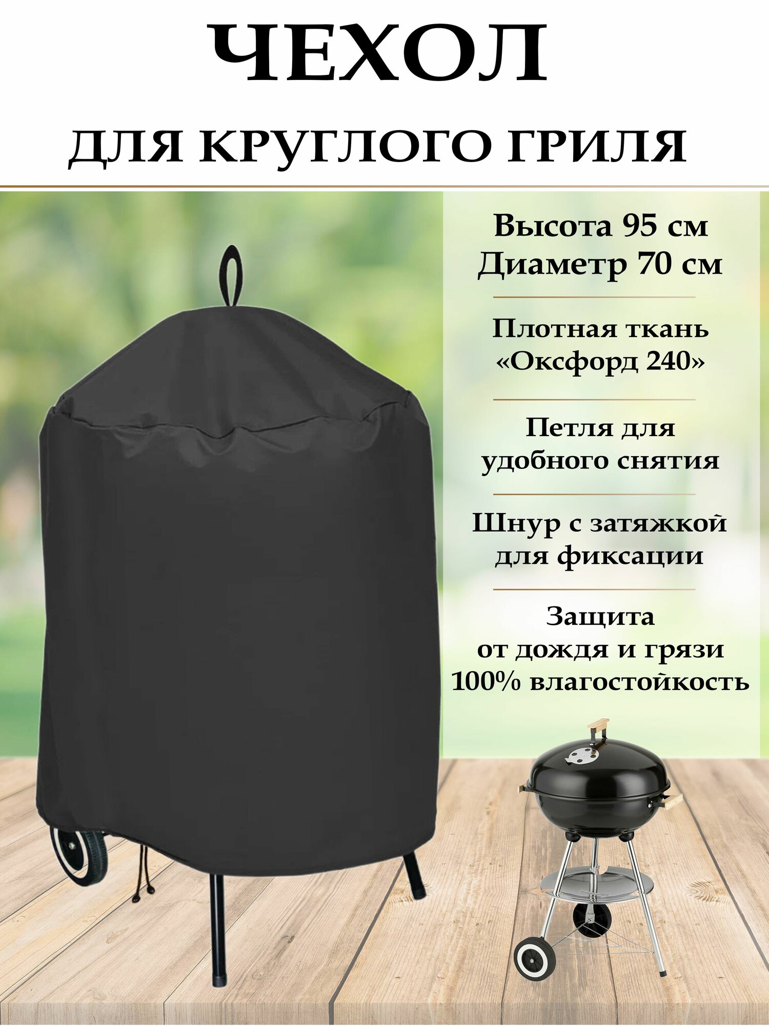 Чехол для гриля Weber 57 см и барбекю диаметром до 70 см. Черный. интересное: