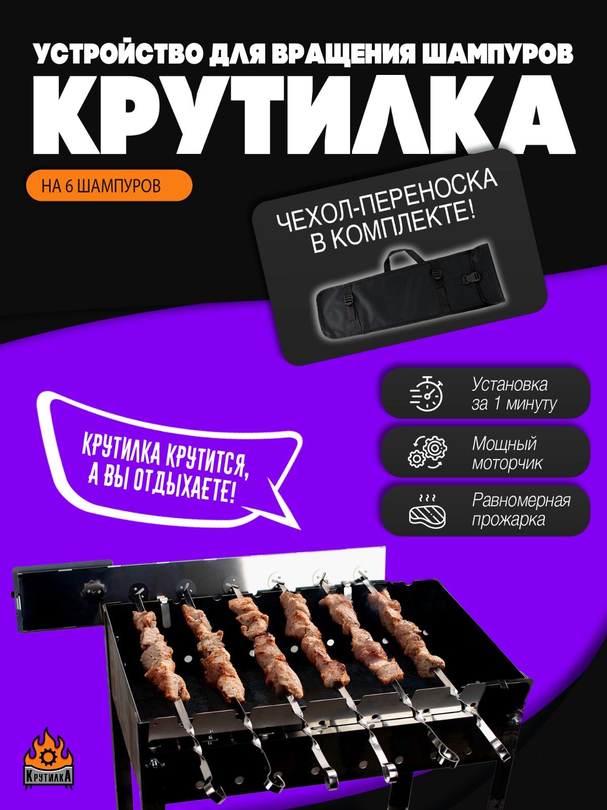 Крутилка для 6 шампуров (без реверса), устройство для вращения шампуров, вертел, самокрут и саможар. Отличный подарок! интересное: