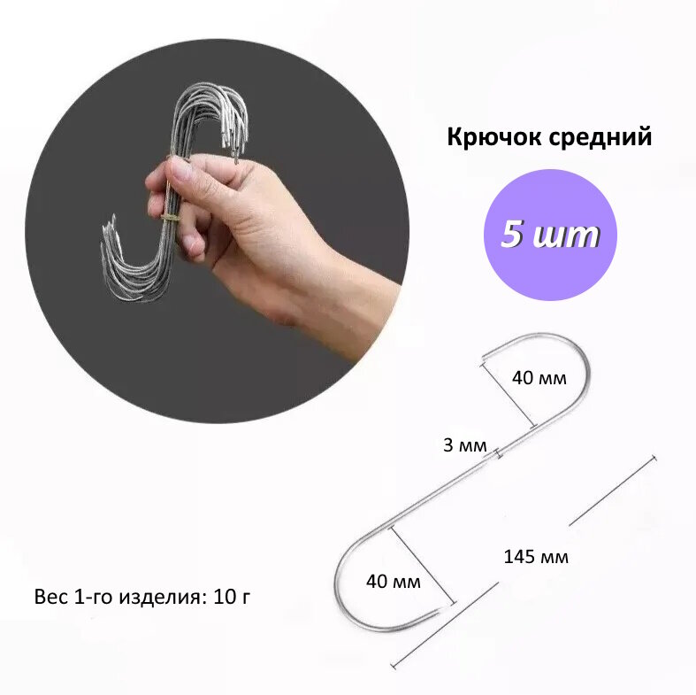 Крюк для мяса и рыбы S-профиль 14,5 см х 2,8 мм (комплект 5 шт) интересное: