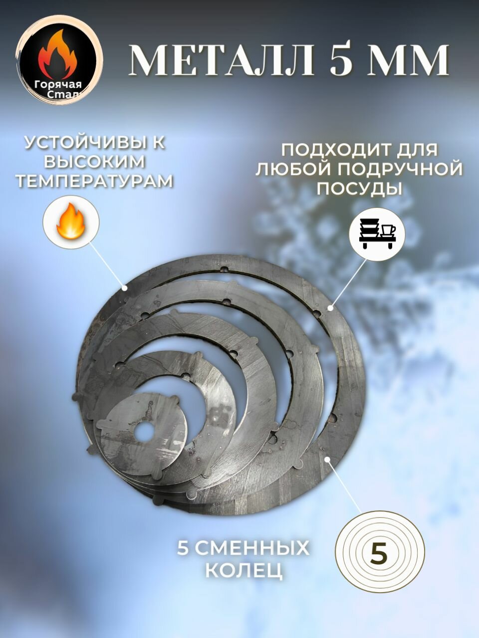 Кольца для печи под казан, подказанник, подставка, переходник, адаптер 490 мм, 5 шт. Горячая Сталь.