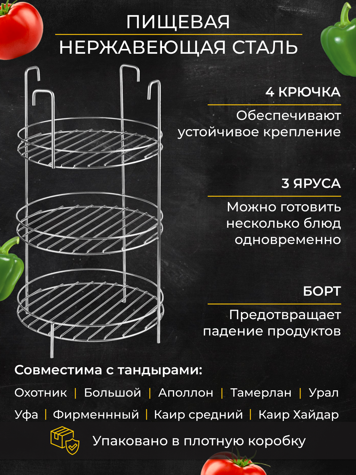 Эконом этажерка для тандыра D23 H37 3х ярусная на ручках с бортом интересное: