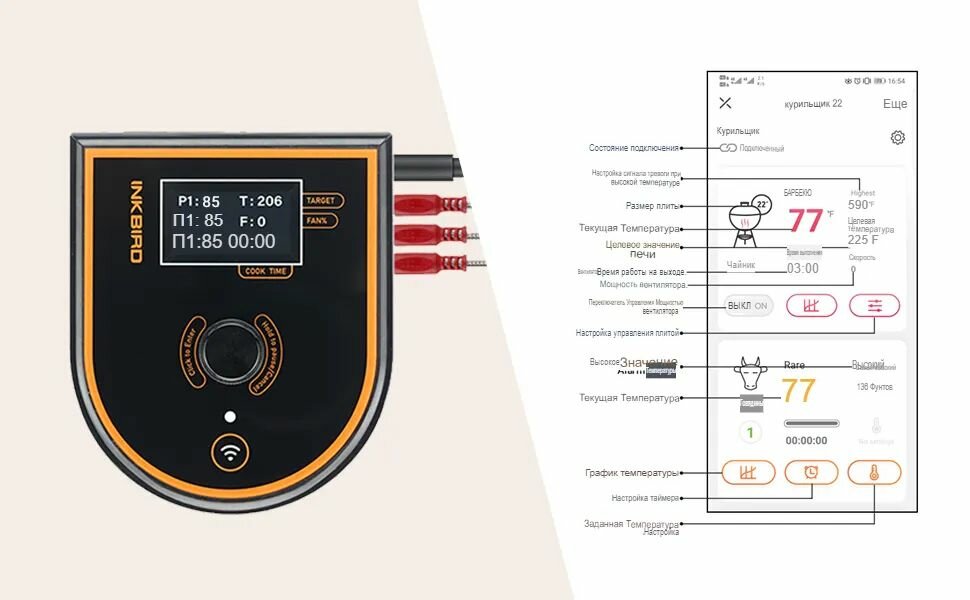Регулятор температуры угольного гриля INKBIRD, Wi-Fi, мультикнопка интересное: