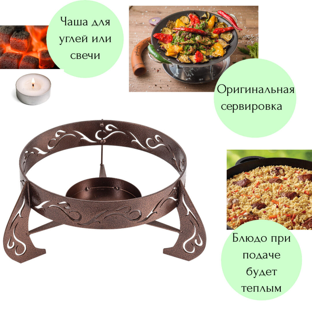 Подставка под казан резная, под чугунный садж, блюдо, с подогревом, для сервировки стола интересное: