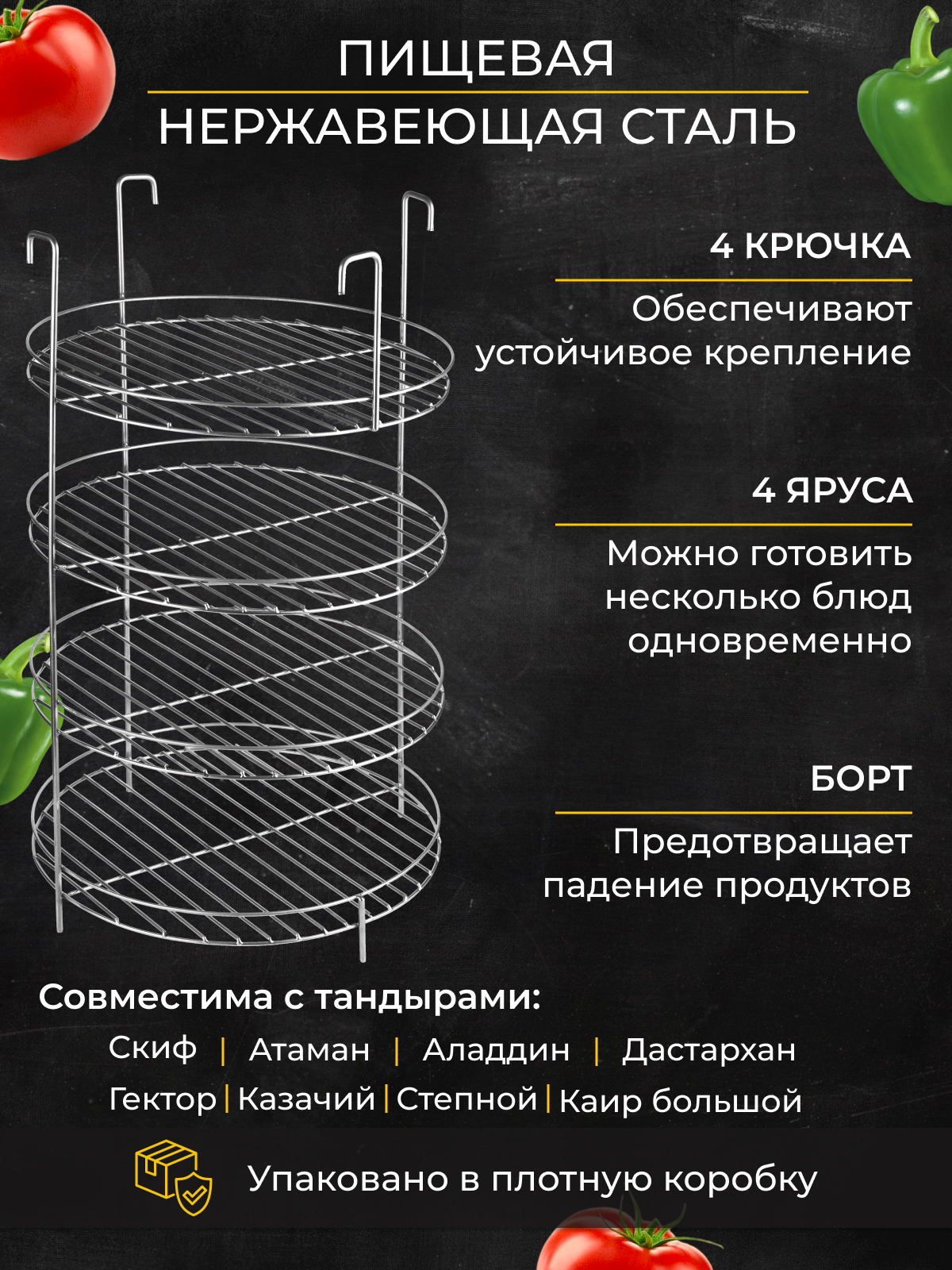 Этажерка для тандыра D32 H50 4х ярусная на крючках с бортом интересное: