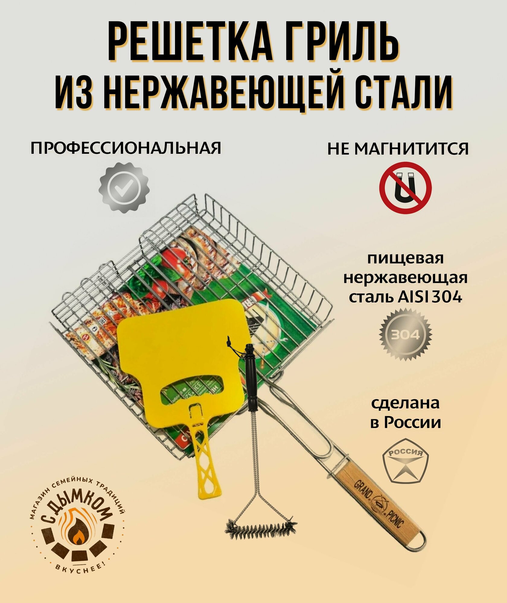 Решётка для гриля на мангал из нержавеющей стали AISI 304 330х320 мм +щетка для чистки гриля интересное: