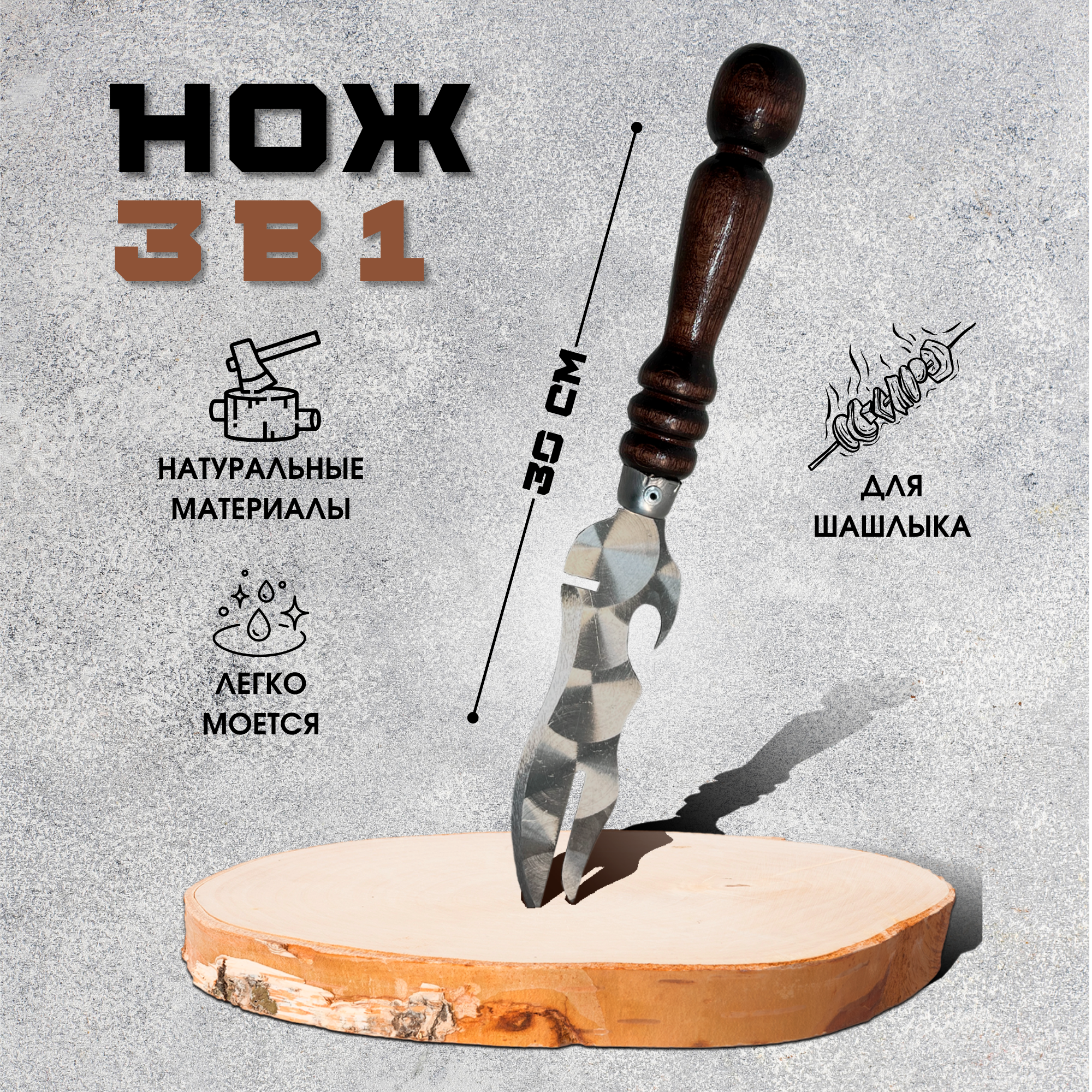 Нож шашлычный Пикник Кавказ, аксессуар для мангала вилка для шашлыка из нержавеющей стали интересное: