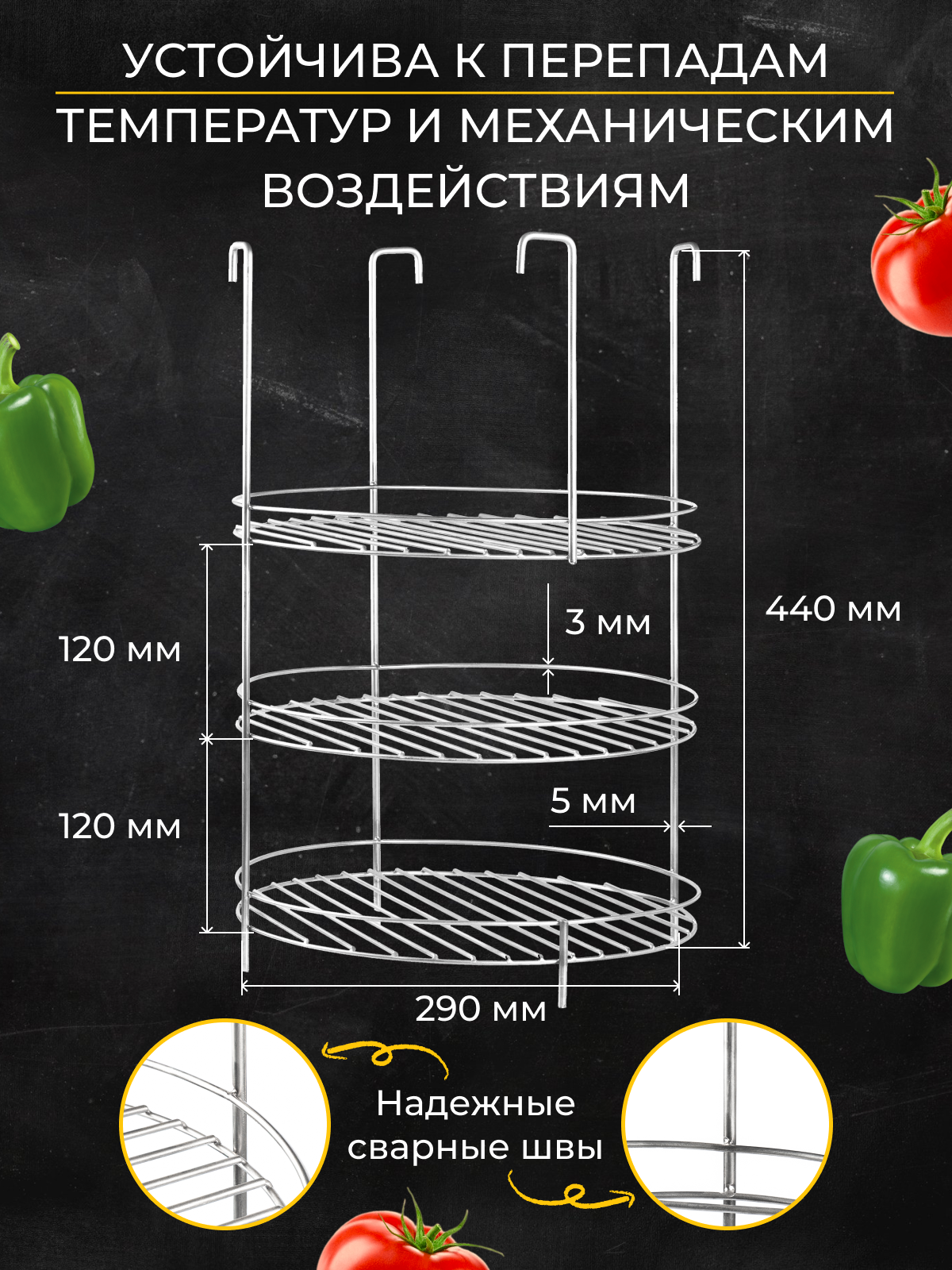 Эконом этажерка для тандыра D29 H44 3х ярусная на крючках с бортом интересное: