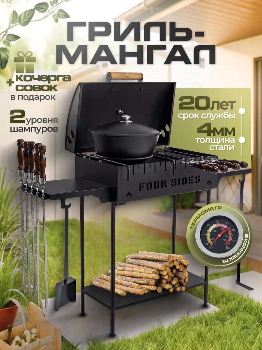 Гриль мангал 4 мм с крышкой для шашлыка интересное: