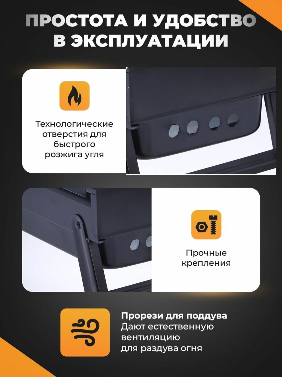 Складной мангал BIRDS AND FISH, с решеткой-гриль, черный, 1,8 кг интересное:
