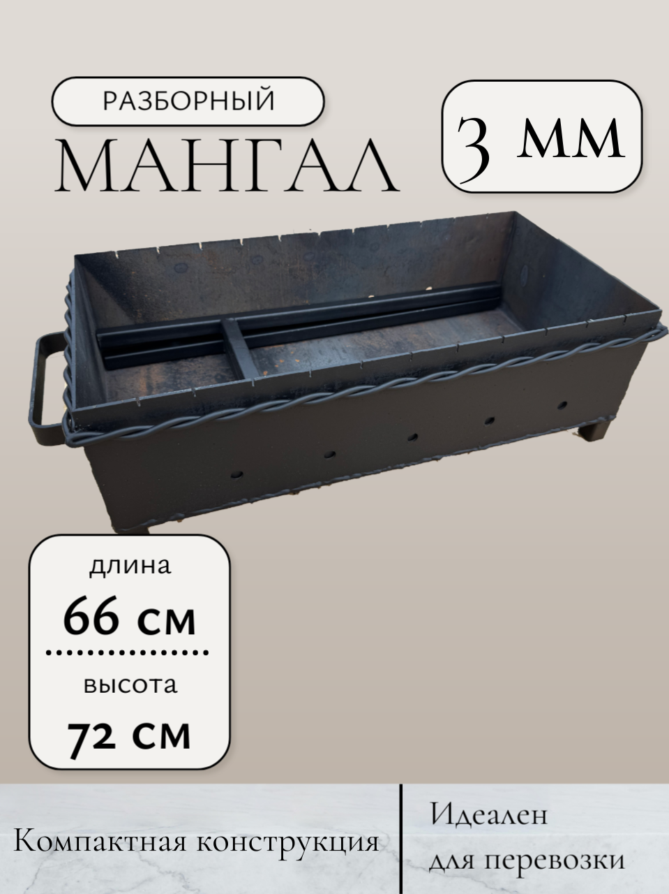 Ниже Вы можете прочитать отзывы на Мангал сварной складной, походный, 600 х 300 х 150/805 мм, Толщина 3 мм, витая проволока для усиления, ознакомится с подробными характеристиками, посмотреть интересные обзоры и фотографии на Мангал сварной складной, походный, 600 х 300 х 150/805 мм, Толщина 3 мм, витая проволока для усиления.