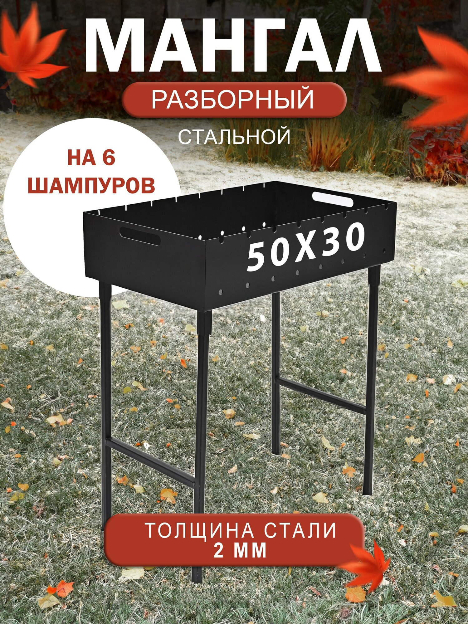 Мангал, Кованые Изделия, разборный, сборный, переносной, на ножках, стальной, на 6 шампуров 50х30х13 мм толщ. стенки 3мм