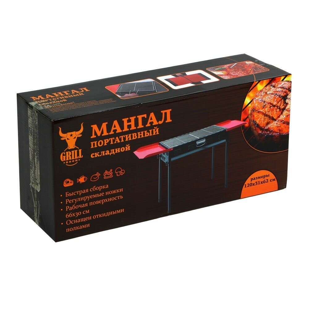 Купить Мангал портативный складной "GRILLBOOM", 120х31х62см, рабочая поверхность 66х30см, железо