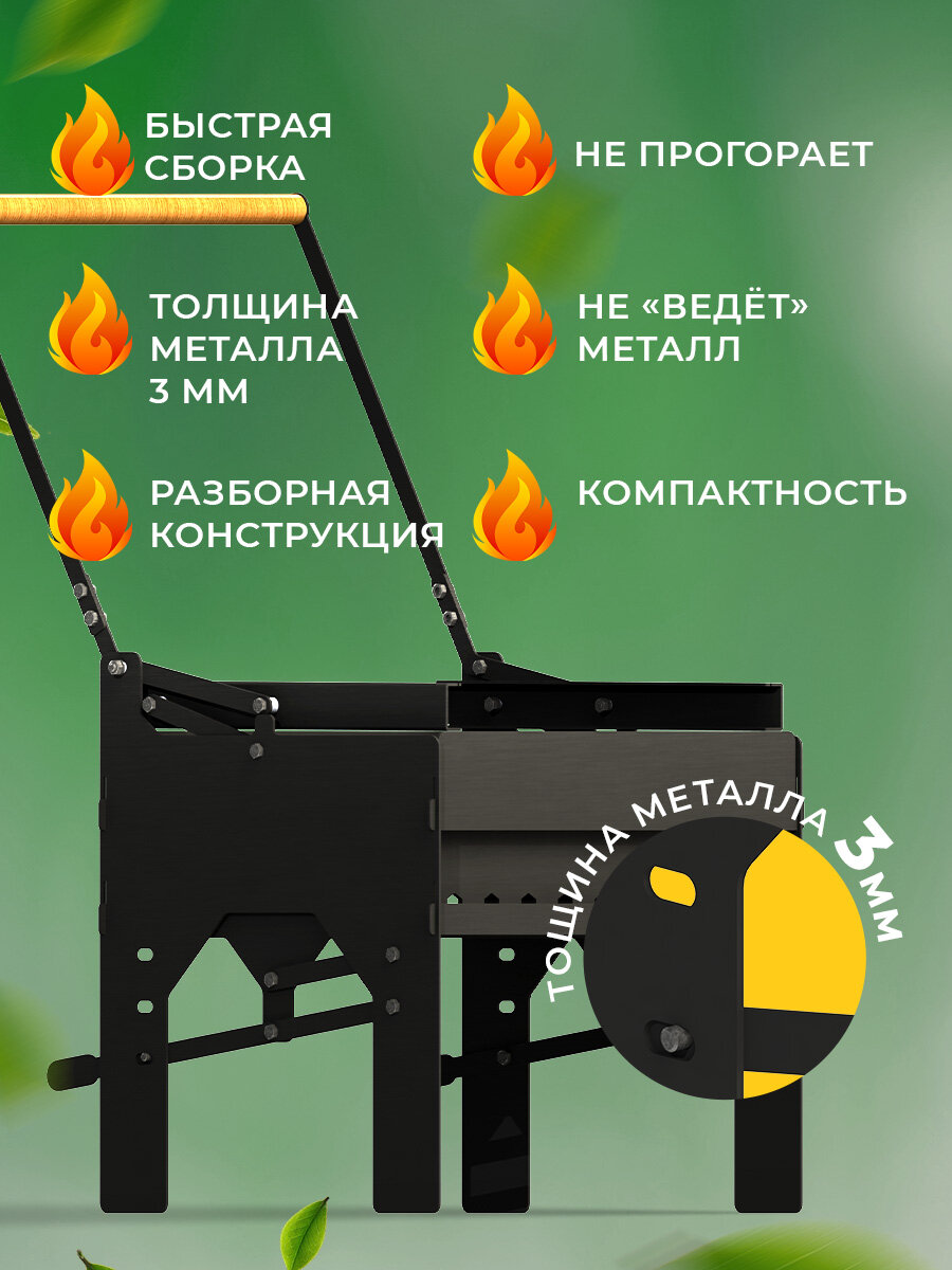 Мангал разборный складной из металла 3 мм "Флиппер" с переворотом жаровни и подъемом углей интересное: