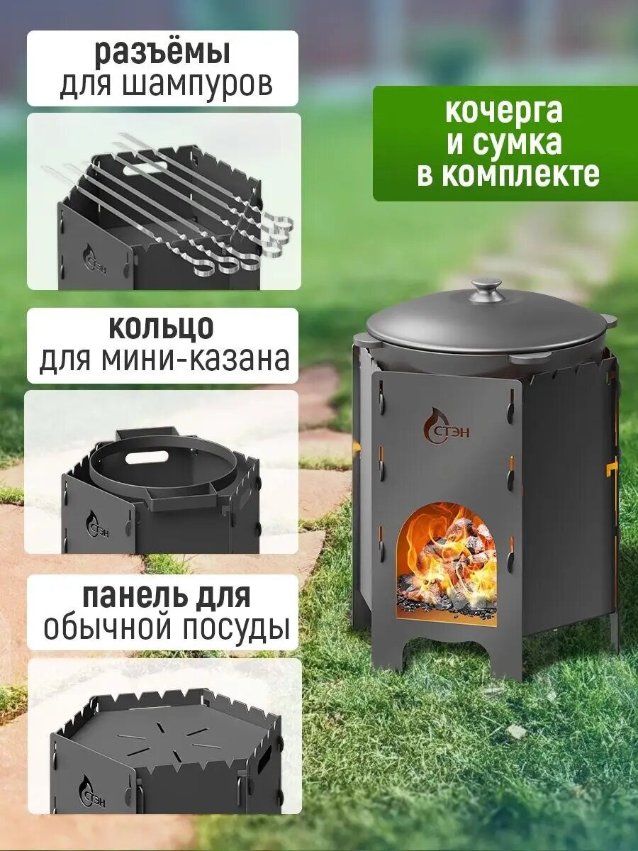 Печь СТЭН "Казан-Мангал", разборная конструкция, 8 шампуров, 18 кг интересное:
