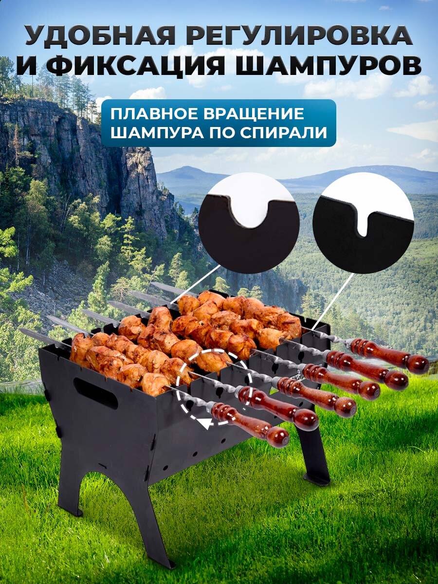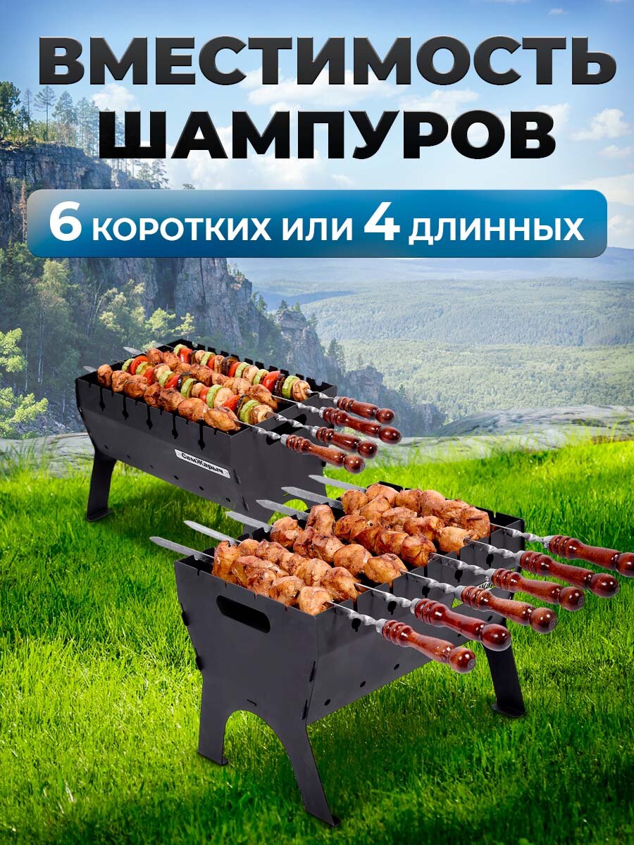 Мангал чемодан складной разборный на ножках, на 11 шампуров, переносной, черная сталь, длина 65 см