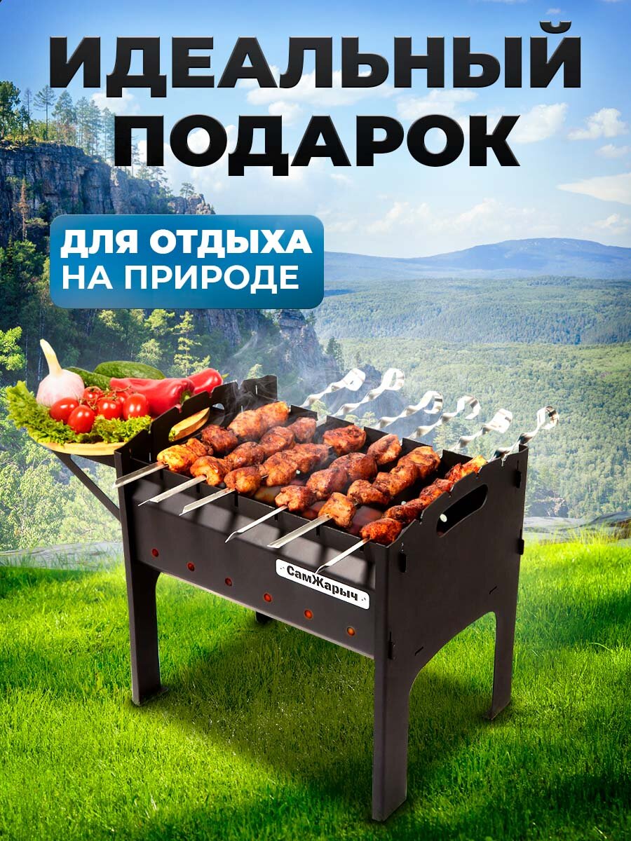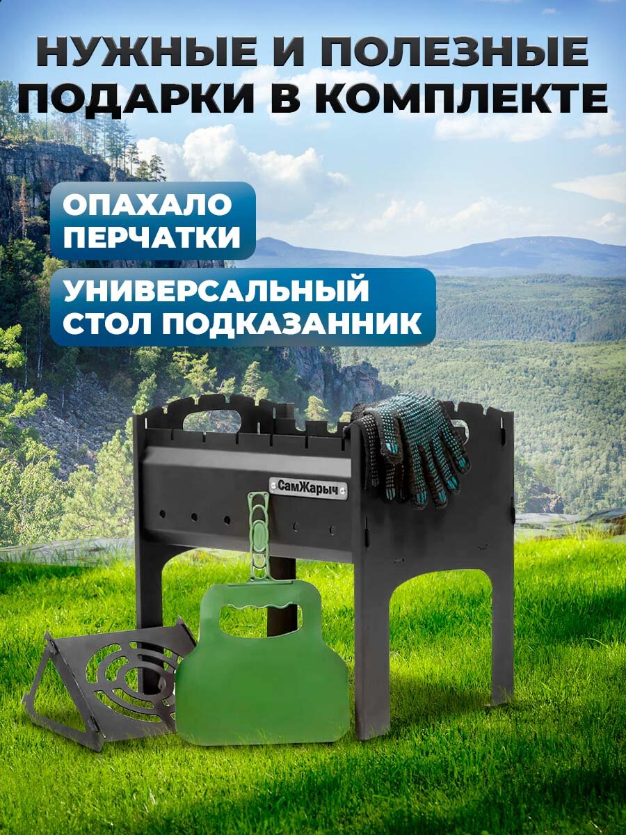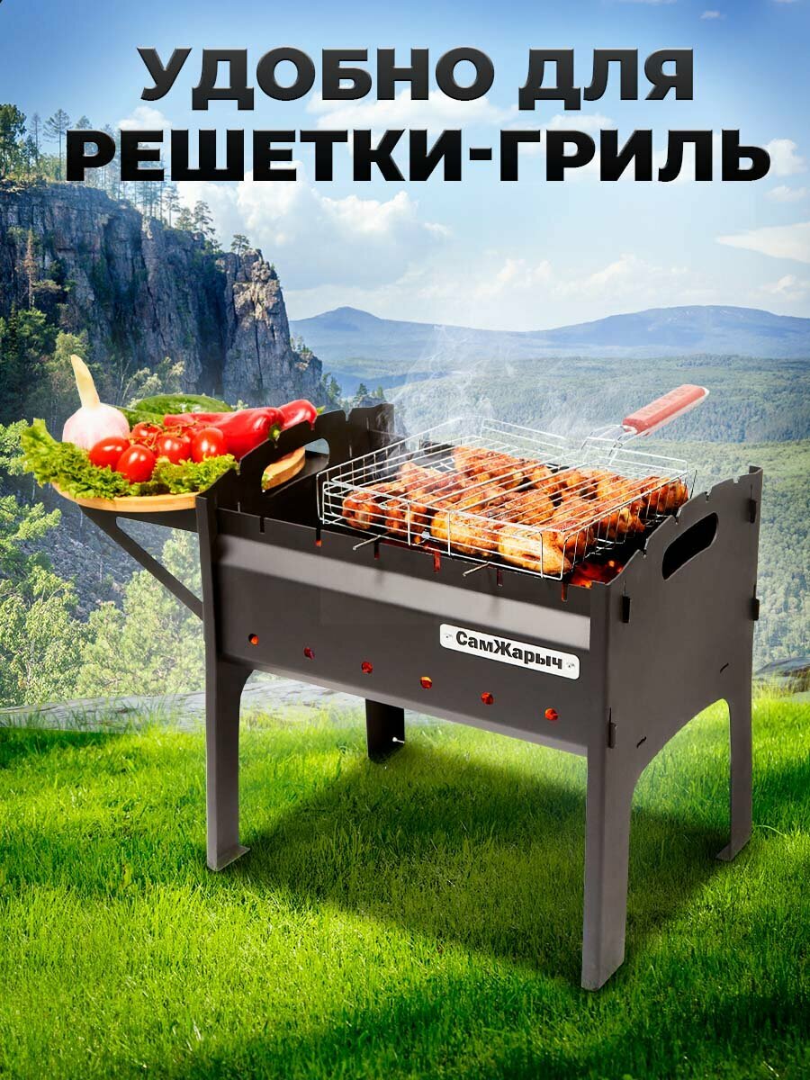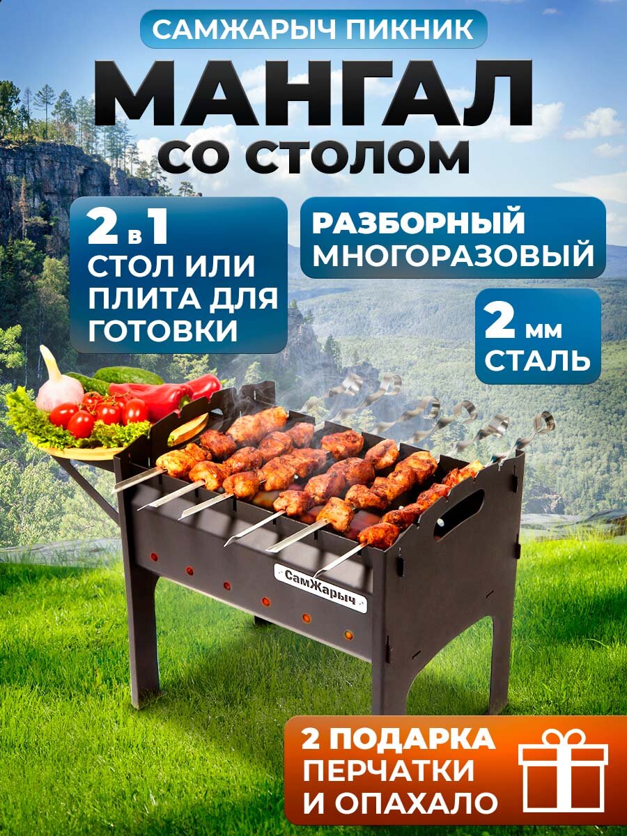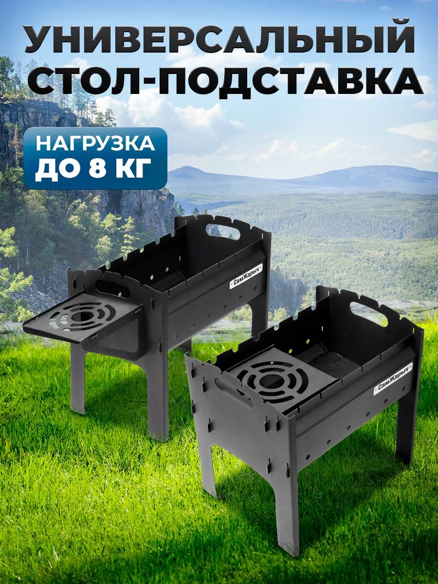 Мангал Самжарыч "Пикник" разборный, складной со столом, 2 мм интересное: