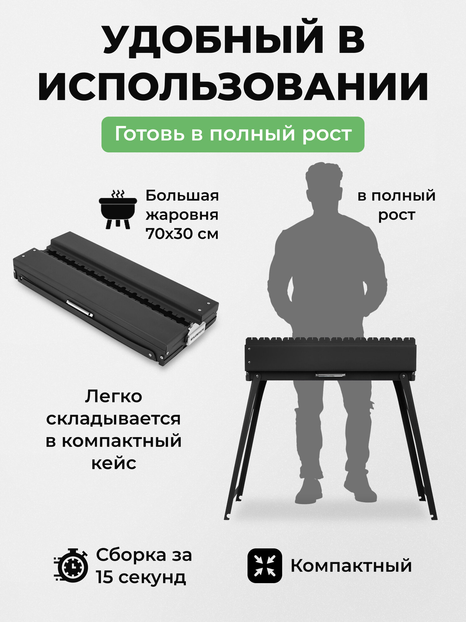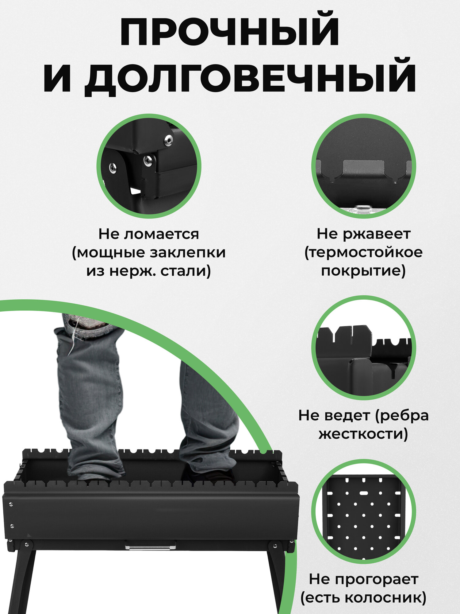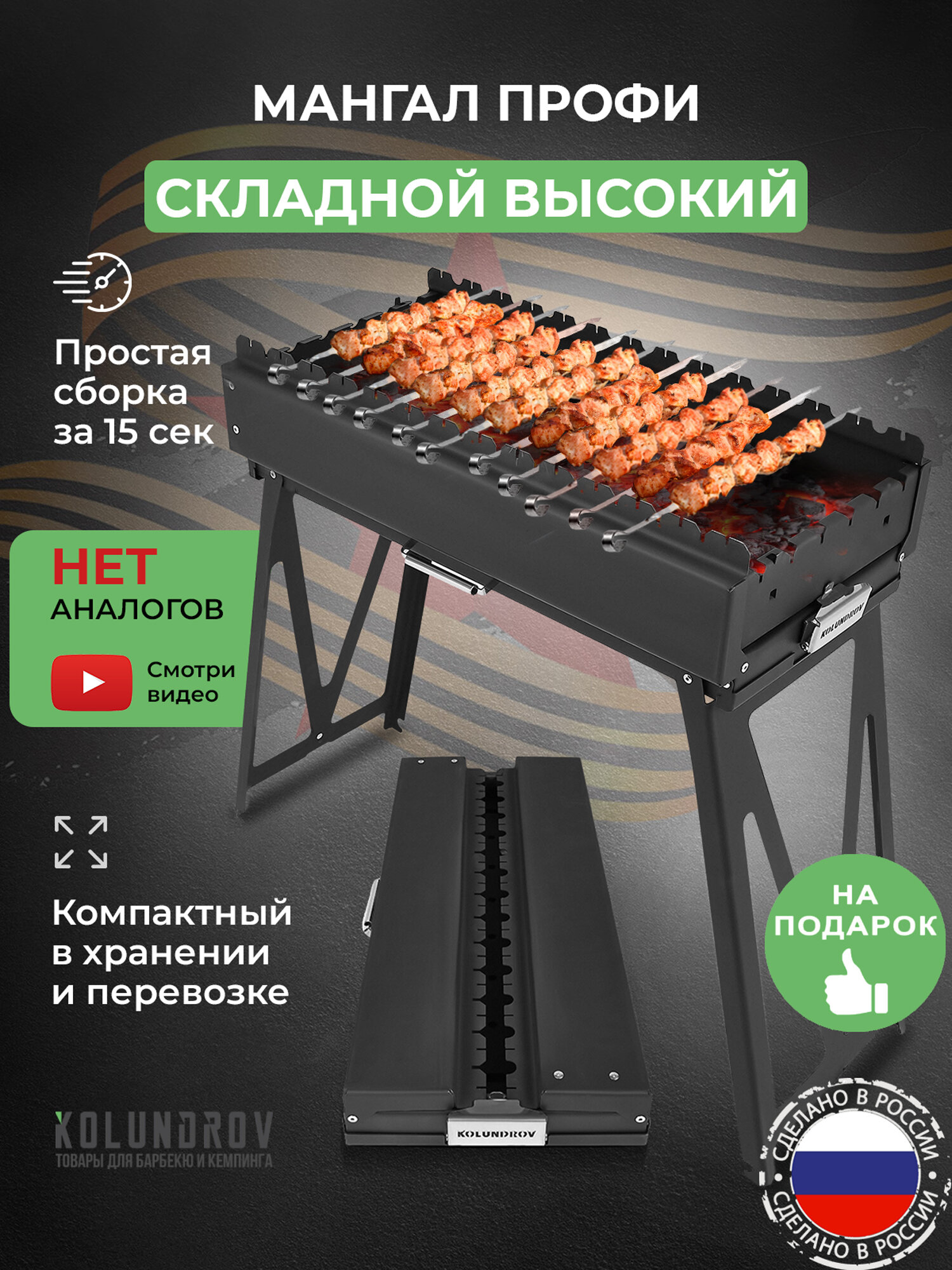 Мангал складной для дачи KOLUNDROV Дипломат Профи, из стали 1,5 мм, с сумкой и кочергой, большой высокий стационарный под казан интересное: